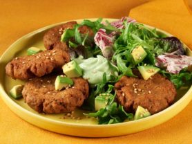 Avocado and Lentil Fritters with Lemon Avocado Yogurt Sauce