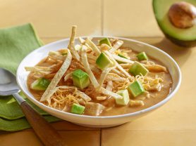 Tortilla Soup with Roast Turkey, Avocado and Cheddar Cheese