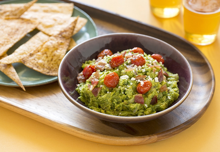 Guacamole lovers and bacon lovers, this one’s for you! Chefs Mary Sue Milliken and Susan Feniger have combined a classic California Avocado guacamole with roasted grape tomatoes and crispy bacon for a combo you’ll love.