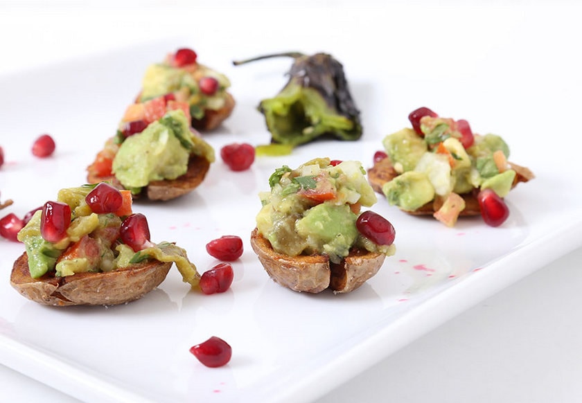 Melissa’s Baby Dutch Yellow® Potatoes stuffed with fresh guacamole made with New Mexico Hatch Chiles, Roma Tomatoes, Garlic, Cilantro and Pomegranate Arils.