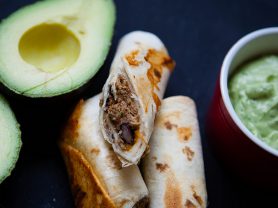 Spicy Pulled Pork Taquitos with a Cool California Avocado Dipping Sauce