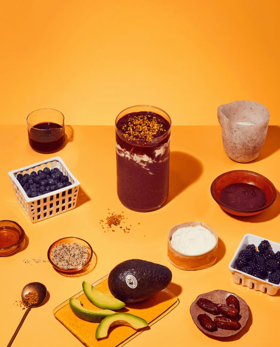 A healthy, low sodium smoothie made with acai berries, California Avocado, blueberries, Greek yogurt, coconut milk, hemp seeds, pomegranate juice and Bee pollen. So much goodness in flavor and nutrition: High potency vitamin B12 (160% DV), vitamin K (60% DV), dietary fiber (57% DV), protein (36% DV), and an excellence source of vitamin C and calcium.