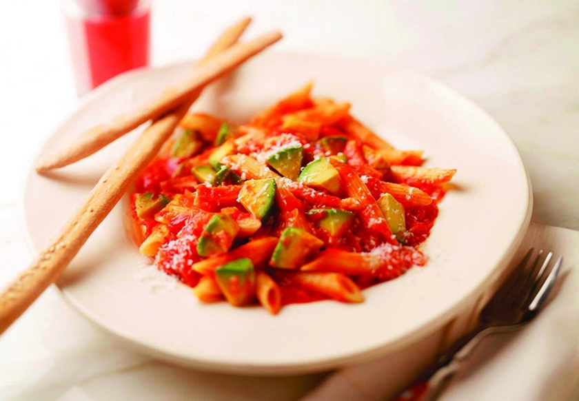Pasta, California Avocado, Pancetta, Tomato, and Hot Pepper Pasta