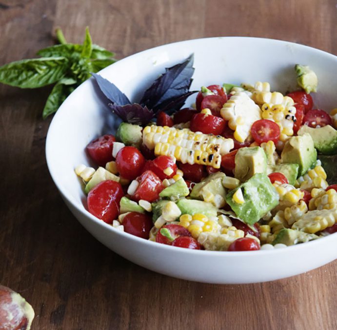This Summer Harvest Salad is loaded with the abundant produce of summer. From juicy grape tomatoes, bursting with flavor, to fresh, creamy California Avocados and of course, grilled sweet corn, this is summer in a bowl. What better way to say goodbye to one of my favorite times of the year and to welcome a new season of abundance with a fresh tomato corn avocado salad? Enjoy!