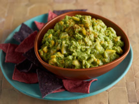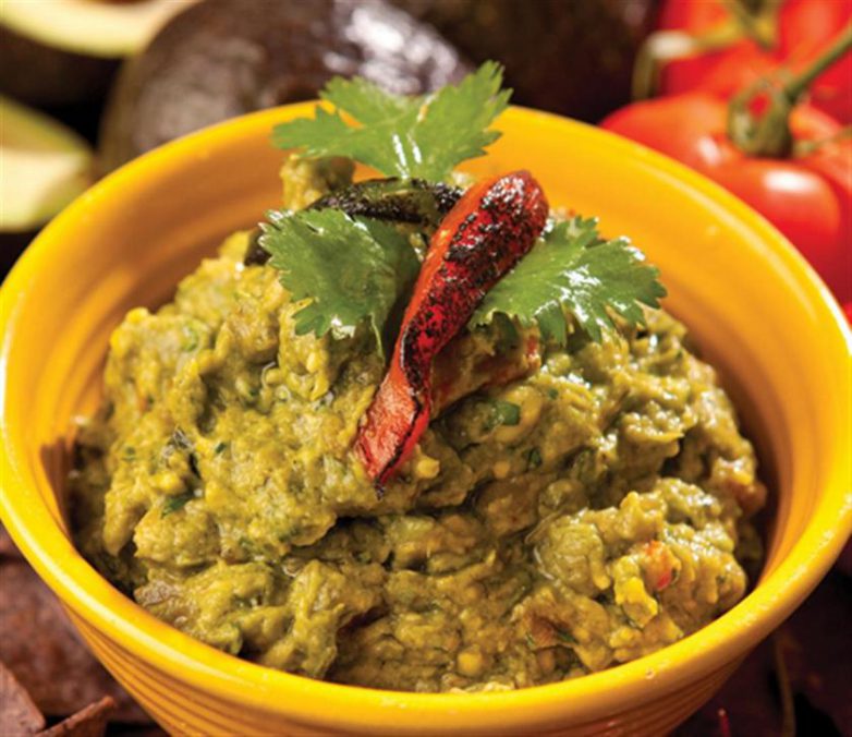Caramelized onion, roasted chiles and red pepper give a unique twist to classic guacamole.