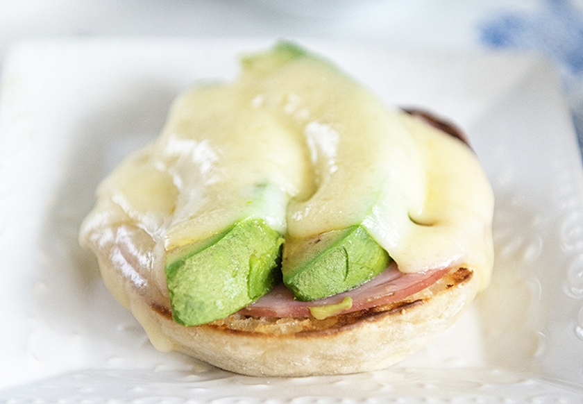 Soft and buttery toasted English muffins topped with Canadian bacon, fresh California Avocado slices and melted baby Swiss cheese. It’s one breakfast you won’t mind losing sleep over! Enjoy!