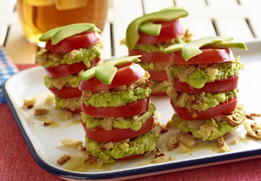 This salad stacks up. Its unique “tower” presentation with toasty bread and an unexpected bacon vinaigrette will bring your BBQ party to life.