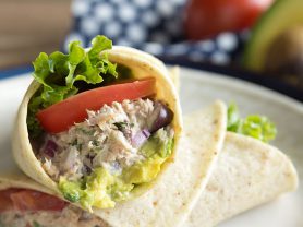 Pick up a rotisserie chicken and this chicken salad inspired wrap is a snap to make.…