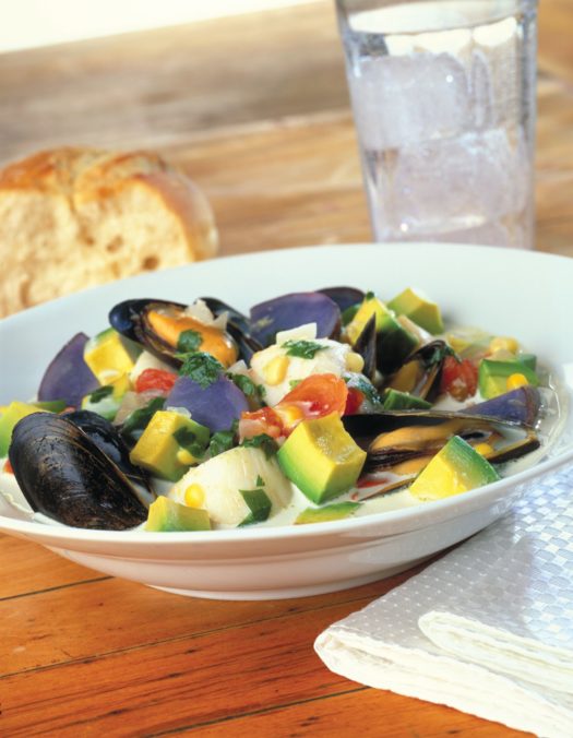 Is your soup menu a snooze? Consider this distinctive seafood chowder where Fresh California Avocados act as a rich and colorful wake-up call.