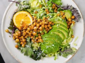 Seven superfoods combine in this delicious and colorful salad: kale, spinach, walnuts, blueberries, sweet potato, tomatoes and creamy California Avocados. For a main dish avocado salad, add another plant-based protein or grilled salmon.