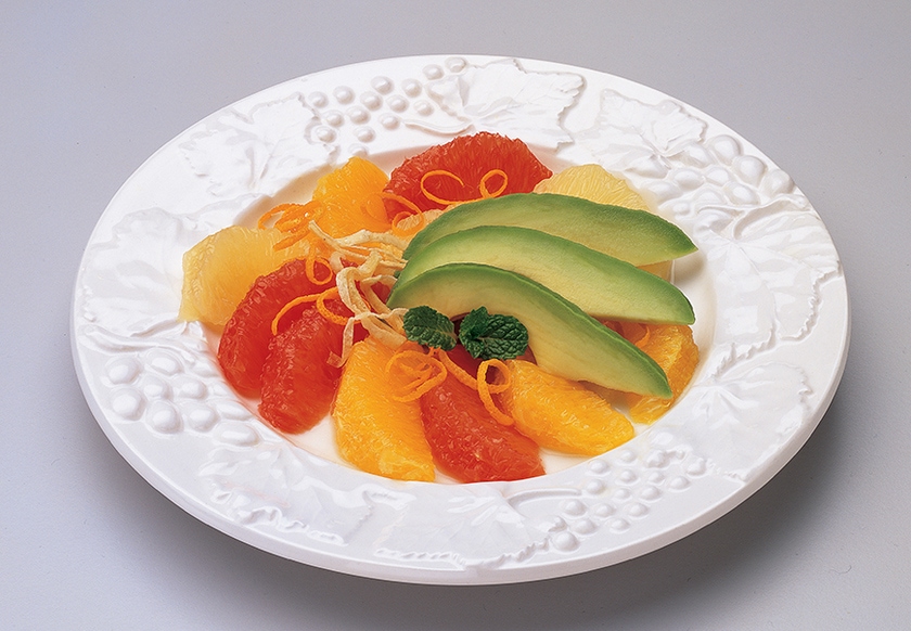 3 6-inch corn tortillas 2 Tbsp. raspberry vinegar 4 oranges 1 sliced ripe California avocado 4 grapefruits 2 Tbsp. honeyInstructions