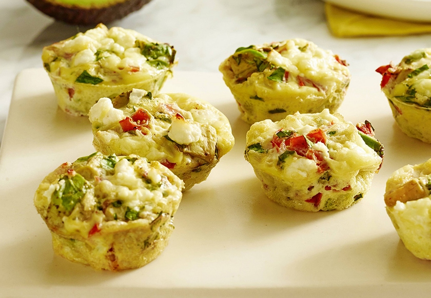 - Spoon two tablespoons of vegetable and avocado mixture into each mini muffin cup.