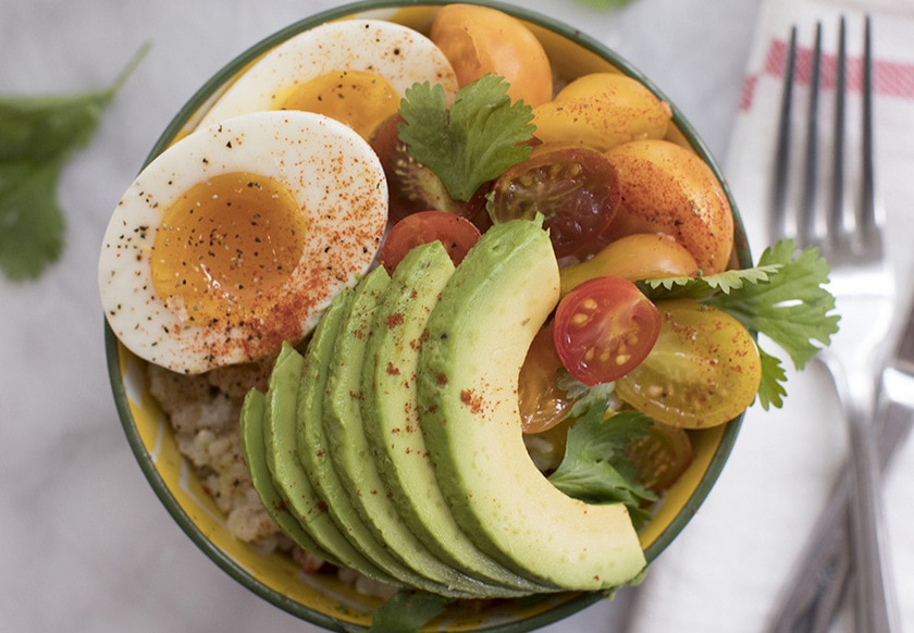 Fiber (32% DV) from the avocado and bulgur along with protein (22% DV) from the egg ensure this hearty breakfast bowl will keep you fueled throughout the day. Bulgur is a quick-cooking whole grain that you can batch cook ahead of time by boiling for 12-15 minutes and then draining off the excess liquid. Scramble, hard-boil, poach or fry the egg depending on your preference and serve with sriracha or hot sauce to spice things up.