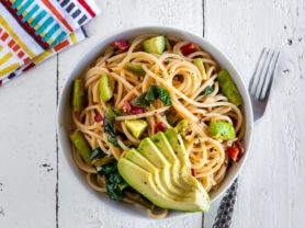 This mango, spinach and avocado smoothie is a creamy, nutritious and delicious smoothie that can be used as a meal replacement. This balanced smoothie contains all three macronutrients (carbs, fat, and protein) and can be used to help reduce visceral fat, lose weight, and fight insulin resistance (Prediabetes). As a breakfast meal, you receive an excellent source of vitamin C with 50% DV of your needs, 29% DV dietary fiber and 24% DV protein.