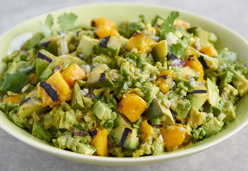 Grilling avocado takes guacamole to a whole new level intensifying its rich, buttery flavor. The sweet and juicy grilled mango pairs perfectly with the warm dip and balances out its spiciness.