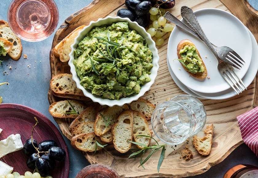 Aromatic shallots and tarragon and a little dry vermouth are flavors that shine together with California Avocados in this guacamole. Served with toasted baguettes and it can feel like you’re at a café in Paris.