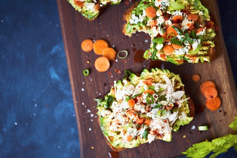 This recipe’s creamy California Avocados along with carrots, blue cheese and hot sauce make for flavorful Buffalo-style spin on a traditional avocado toast recipe.