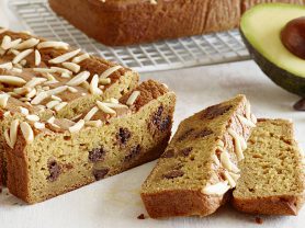 This California Avocado Banana Chocolate Chip Bread is one for the books! It has it all with a gooey center and a crisp topping that is studded with extra chocolate chips. The addition of heart-healthy fresh California Avocados creates an extra moist center that makes the banana bread even more scrumptious. Substitution of avocado for a higher calorie ingredient like butter may reduce the intake of calories, saturated fat, sodium and cholesterol while getting the healthy benefits of the fruits nutritional value.