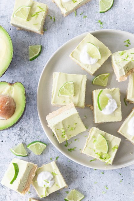These vegan key lime pie bars have a cool silky texture atop a sweet, crumbly and buttery, gluten-free crust. These tasty treats are cholesterol free and provide and excellent source (20% Daily Value) of vitamin E, an antioxidant.