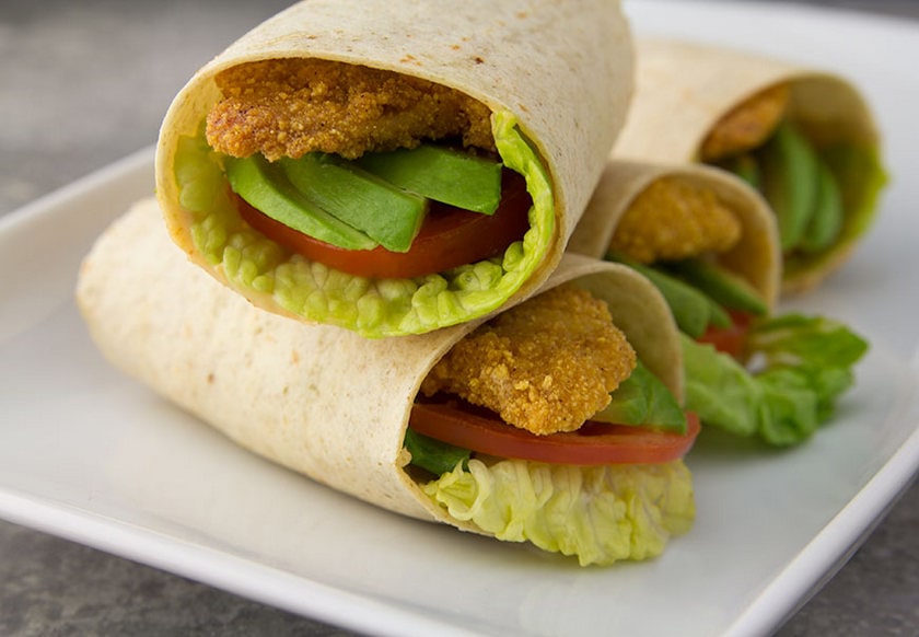 Corn flake-crusted baked chicken tenderloins make for a satisfyingly crunchy wrap sandwich with creamy California Avocados and the zesty touch of chipotle mayonnaise.