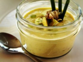 This refreshing Thai-spiced chilled avocado-coconut soup topped with chilled poached shrimp is a perfect entrée or…