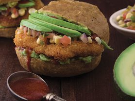Corn flake-crusted baked chicken tenderloins make for a satisfyingly crunchy wrap sandwich with creamy California Avocados…