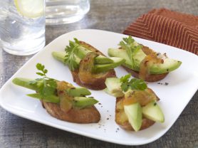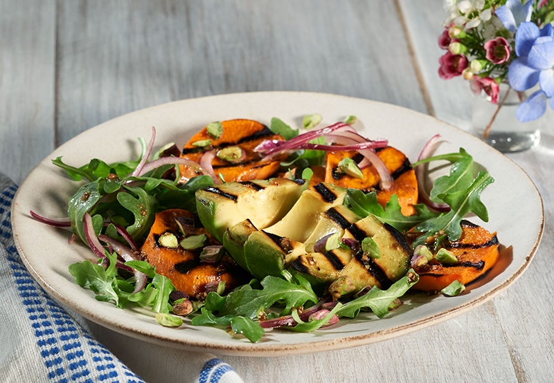 This grilled avocado and sweet potato salad is slightly smoky, slightly sweet and full of flavor. It’s simple to prepare yet has an impressive presentation. This recipe is an excellent source of dietary fiber (46% DV) and potassium (25% DV). Consuming foods rich in fiber may reduce the risk of heart disease, obesity, and type 2 diabetes. Additionally, a diet rich in potassium helps to offset some of the harmful effects that sodium has on blood pressure.