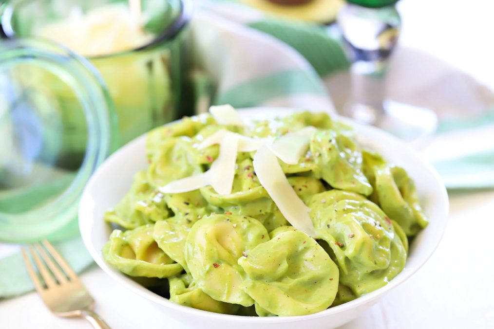 Tortellini is tossed in a creamy avocado sauce for a crazy delicious and easy dinner any night of the week!