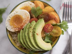 Sautéed veggies and soft scrambled eggs in a California Avocado half make a satisfying breakfast choice.…