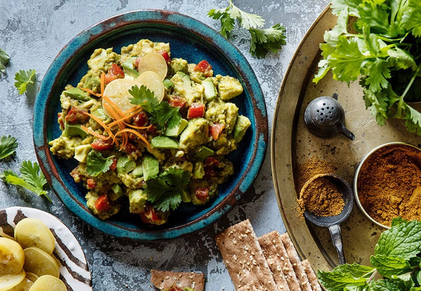Ras al hanout seasoning, the signature spice blend from Morocco, is the star of this flavorful guacamole – along with California Avocados, of course!