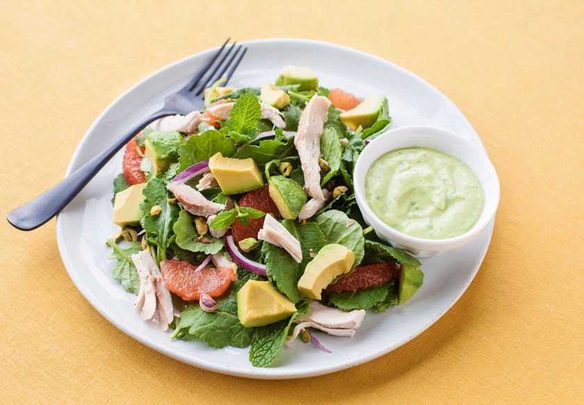 Kale salad gets a cool California twist with creamy California Avocado dressing and fresh smoky California Avocado. Add smoked chicken that you’ve made in your own backyard, or store-bought rotisserie chicken, for a complete meal.