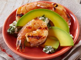 Chili and Honey Glazed Shrimp with California Avocado and Goat Cheese